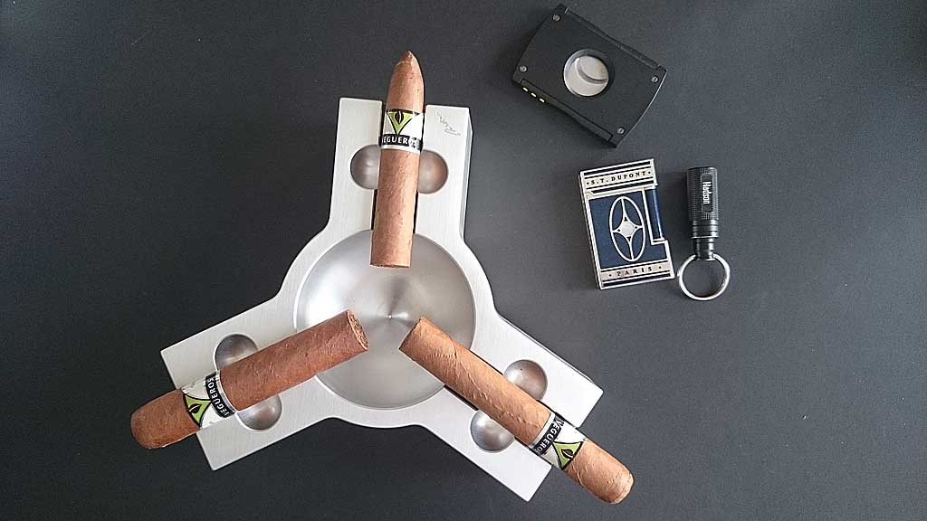 Die Zigarre hat ein Deckblatt guter Qualität, die Farbe ist hellbraun. Sie ist perfekt gerollt und besitzt einen perfekten Zugwiderstand, wie ich ihn mag. Der Kaltzug zeigt Aromen von junger Walnuss und Heu.