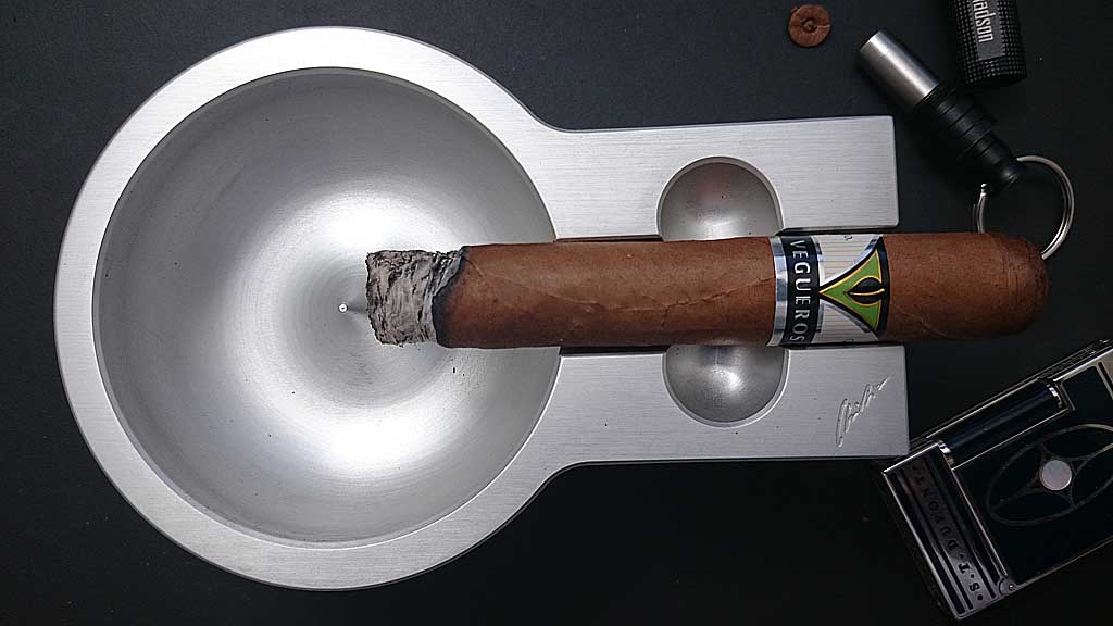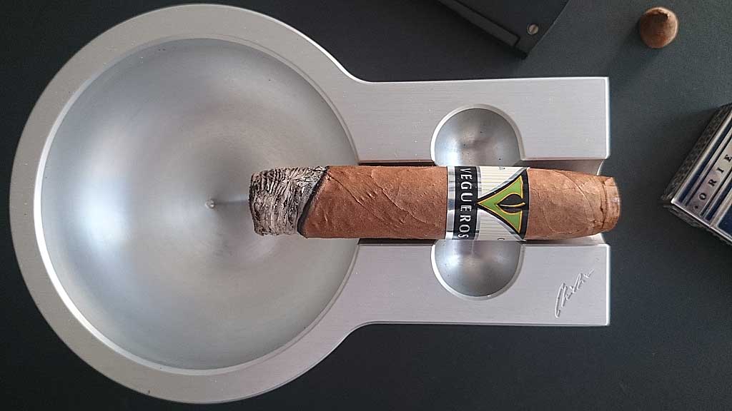 veg-ma-01The cigar has a good quality wrapper, the colour is light brown. It is perfectly rolled and has a perfect drawing resistance, like I prefer. There are flavours of young walnuts and hay.