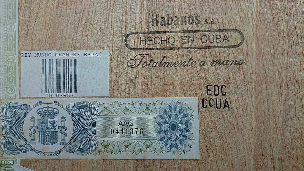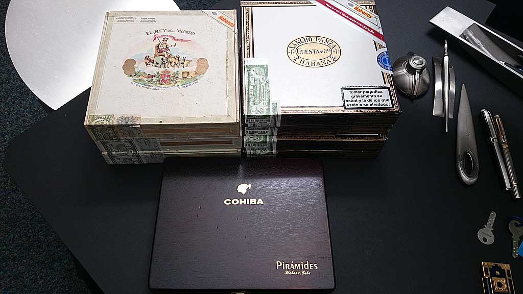 Eine Kiste Cohiba Edición Limitada 2006, heute schwer zu finden. Drei Kisten El Rey del Mundo – Grandes de España, eine eingestellte Zigarre mit Boxdates von 1999 bis 2001. Vier Kisten Sancho Panza – Quijote – Edición Regional España 2011, eine kleine Chance sie zu finden, mit 2005 produzierten Boxen.