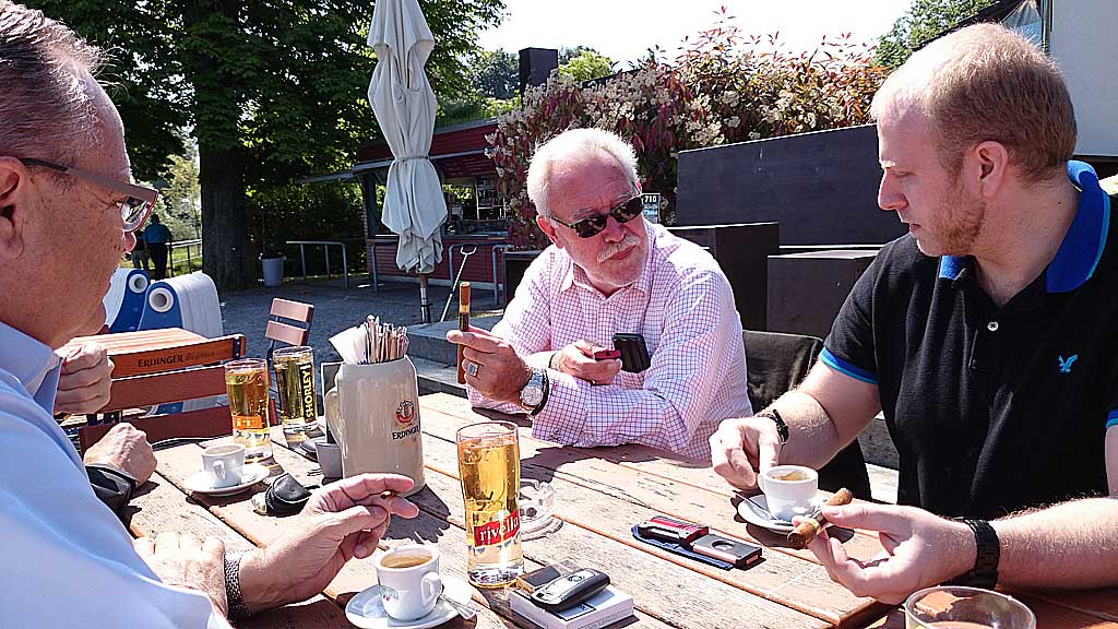 The day after we met Hans, Nino and Yannick. A little bit later Urs came to our group. We went at the lake of constance, enjoyed cigars and had good discussions. A little bit later Urs wife came to us. After a short dinner we moved to Urs’ shop. He gave all of us a La Gloria Cubana No. 3 from 2002 and a good rum.