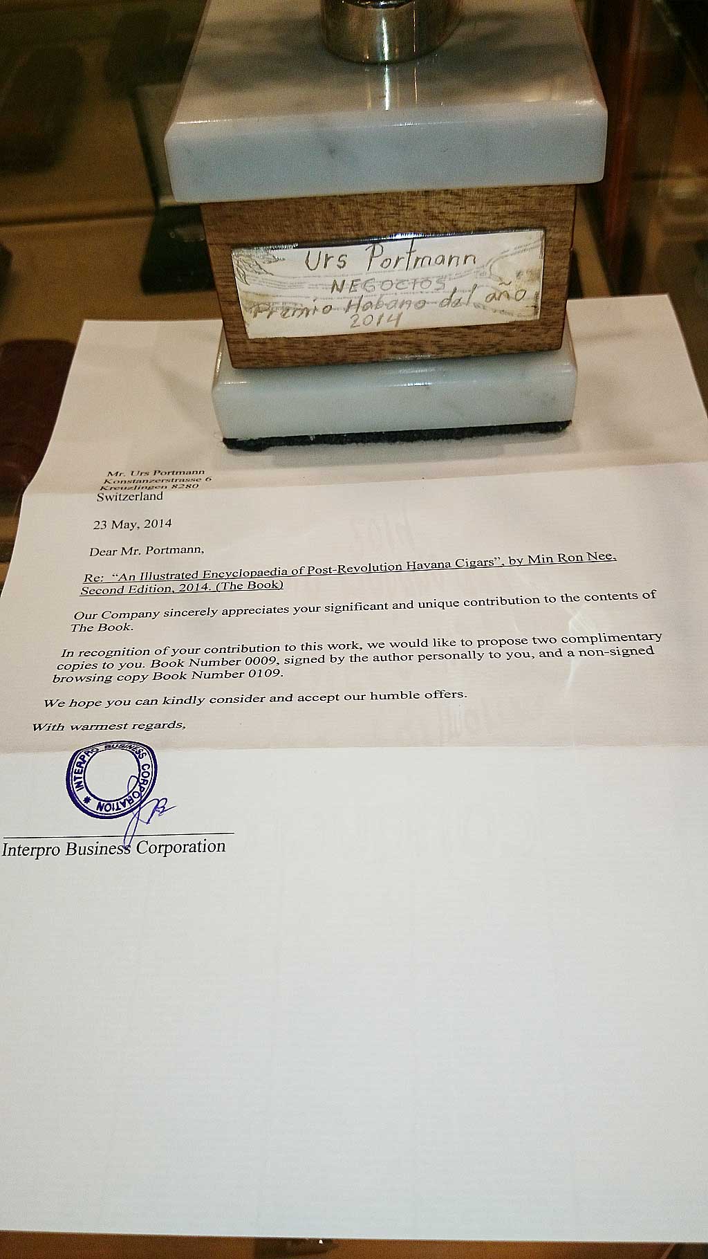 Am Ende machten wir noch Aufnahmen von Dr. Nip’s Brief und dem ‘Hombre Habanos’ Pokal.