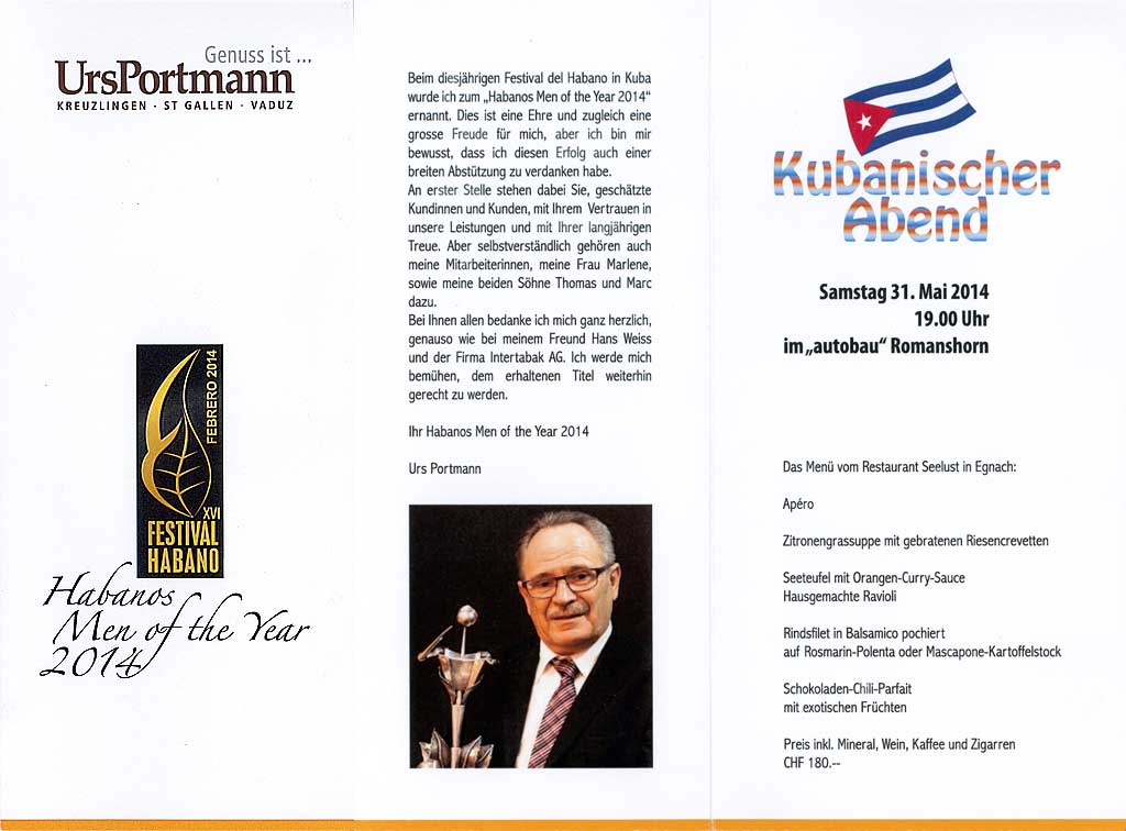 Gefeiert wurde an diesem Abend, im Zeichen seiner Auszeichnung ‘Habanos Men of the Year 2014’, Urs Portmann und seine Verdienste für die kubanischen Zigarren.