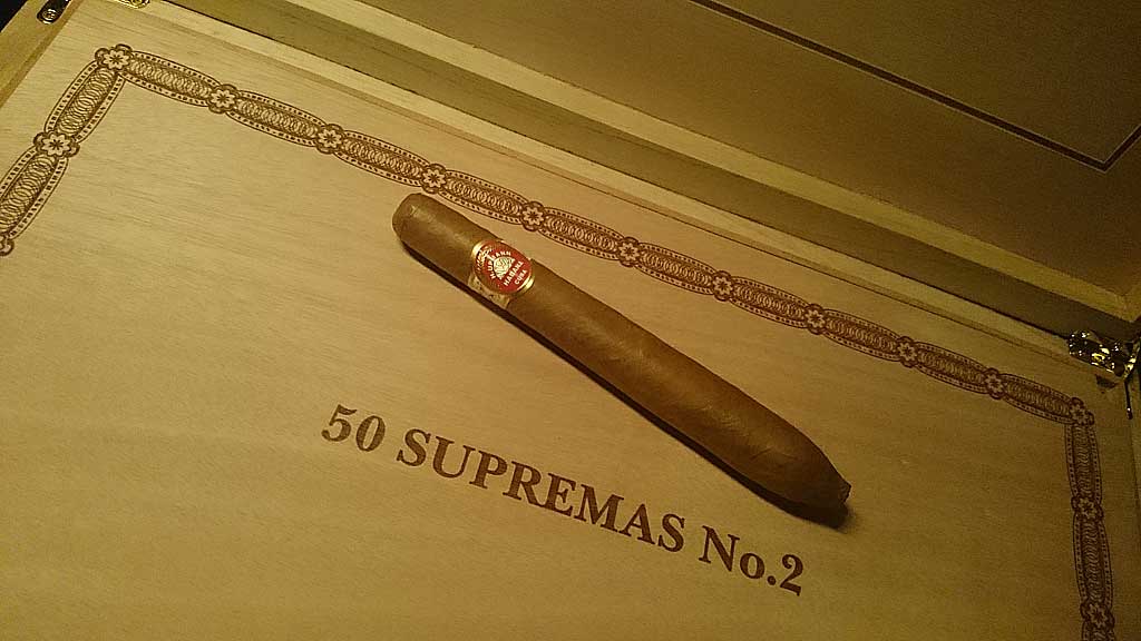 Der H. Upmann – Supremos No. 2 – Réplica Humidor Antiguo 2014 ist mein neuster Zugang. Ich kaufte ihn vor 10 Tagen in der La Casa del Habano Zürich. Ein weiterer wird nächste Woche folgen. 450 Stück wurden weltweit produziert, 100 Stück mehr als die Jahre davor. Nichtsdestotrotz, mit 100 Stück mehr produzierten, es ist sehr schwer ihn zu bekommen. Vom letzten Réplica Humidor Antiguo 2013 war es kein Problem an acht Stück zu kommen, dieses Jahr scheint bei zwei Stück zu bleiben. Könnte es sein, dass es weltweit mehr und mehr Zigarrensammler gibt und Spezialveröffentlichungen sehr schnell vom Markt absorbiert werden? Ich weiss es nicht.