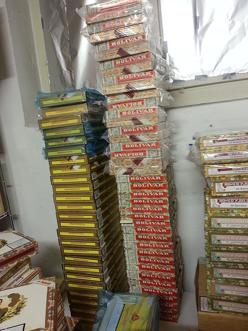 .Cigar-BunkerDoing inventory at the end of 2014, small tower of La Gloria Cubana Tainos and other brands