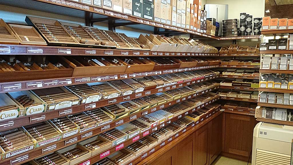 The shop from inside – entrance to the walk in humidor.